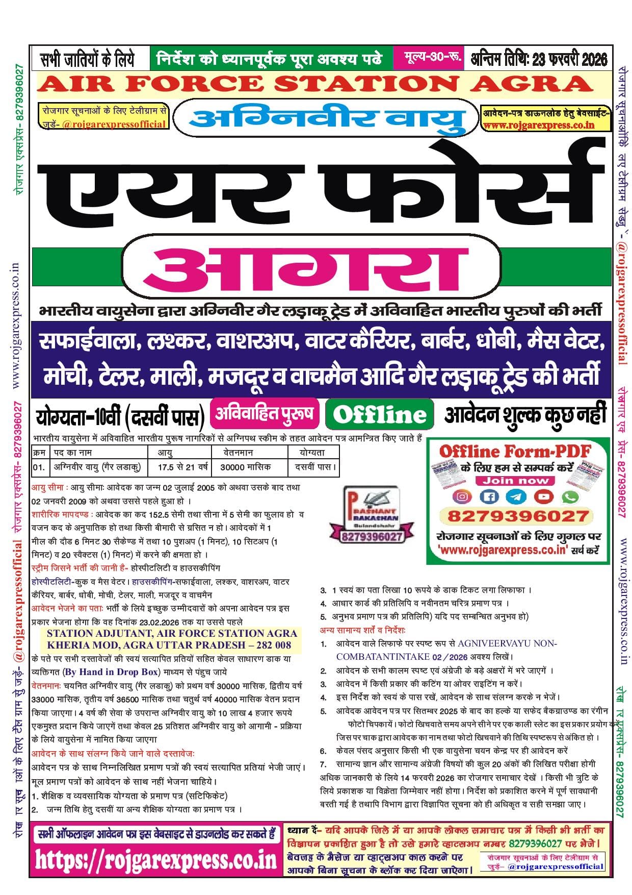 - Indian Air Force Agniveer Vayu Non-Combatant, Agra
