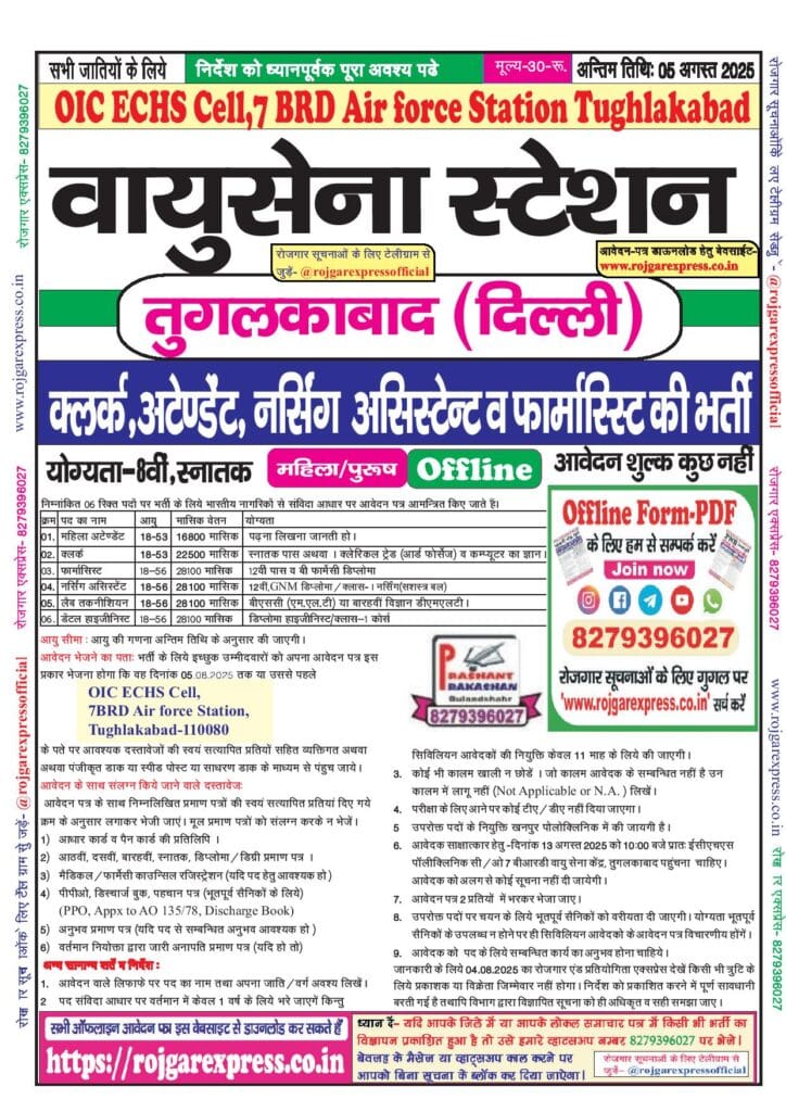 Category: 10th Pass, 12th Pass, 8th, Airforce, All India Jobs, Defence, Graduation, IT Jobs, Latest Jobs, Offline Forms