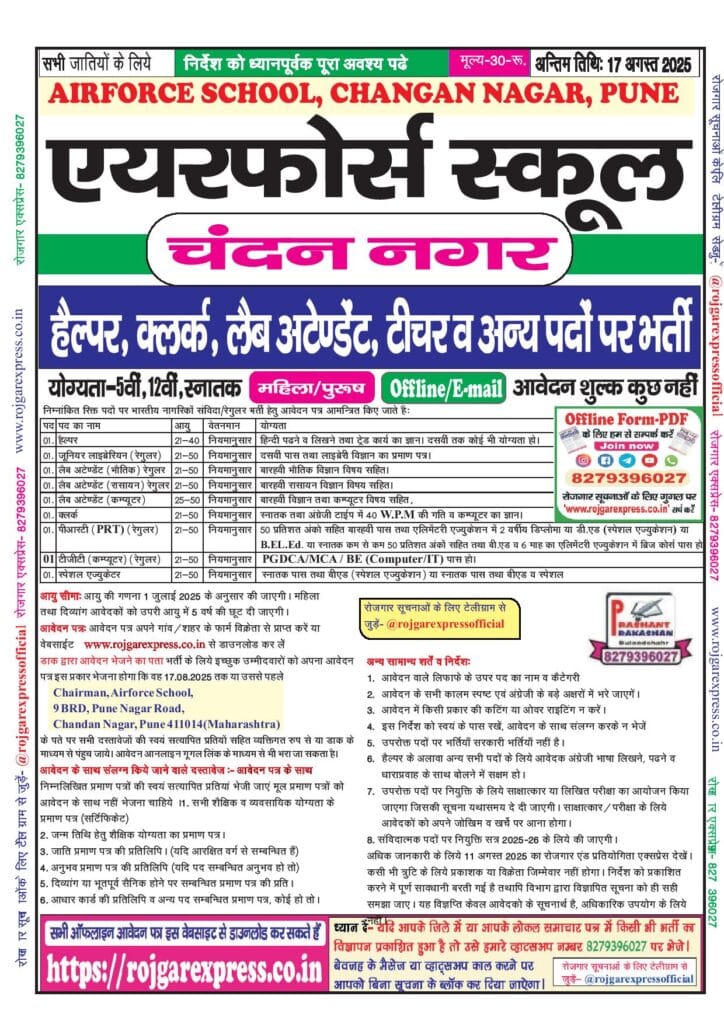Category: 12th Pass, 5th, Airforce, Defence, Graduation, Latest Jobs, Offline Forms