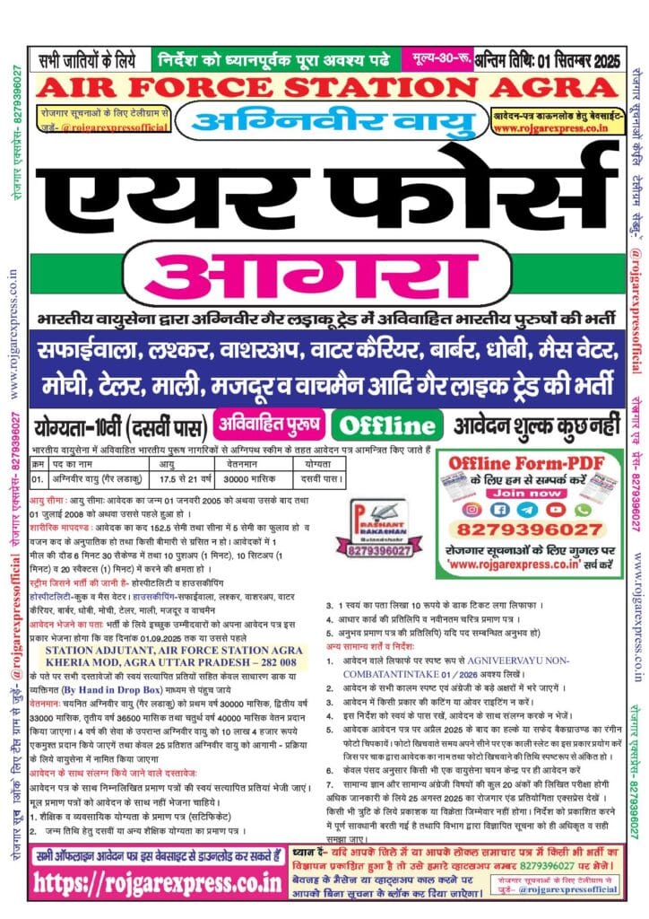 Category: 10th Pass, Agniveer Vayu, Airforce, Latest Jobs, Offline Forms