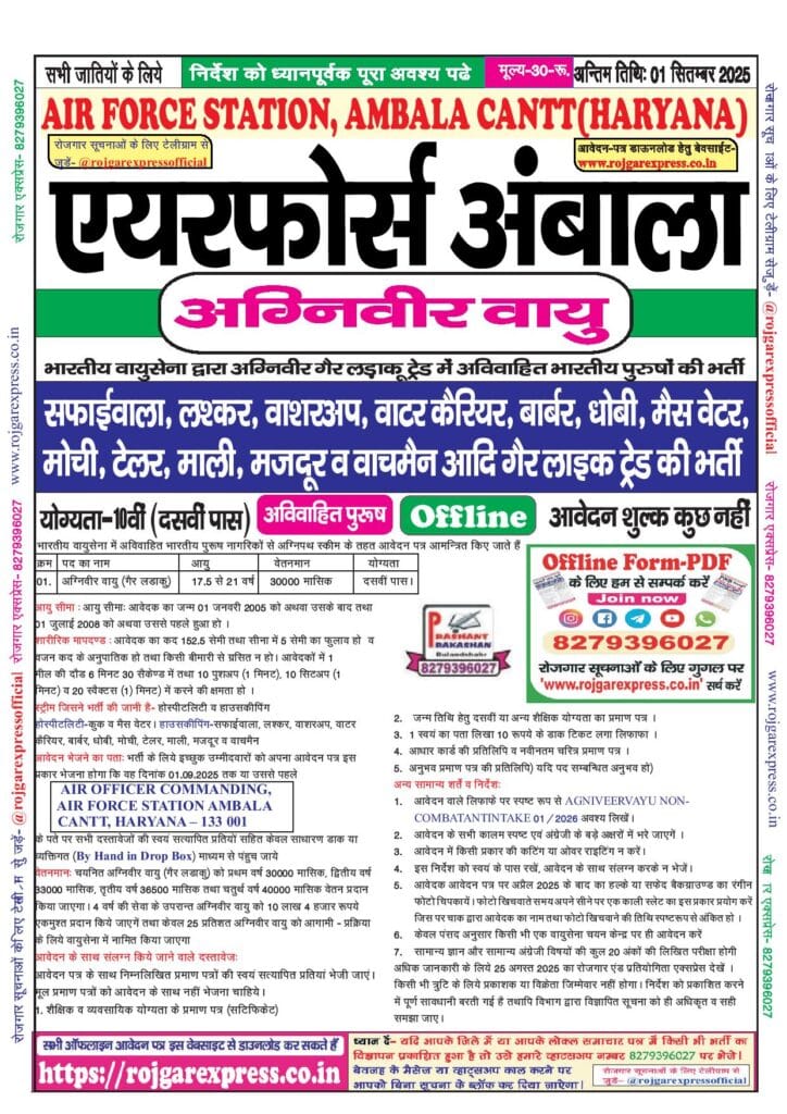 Category: 10th Pass, Agniveer Vayu, Airforce, Latest Jobs, Offline Forms