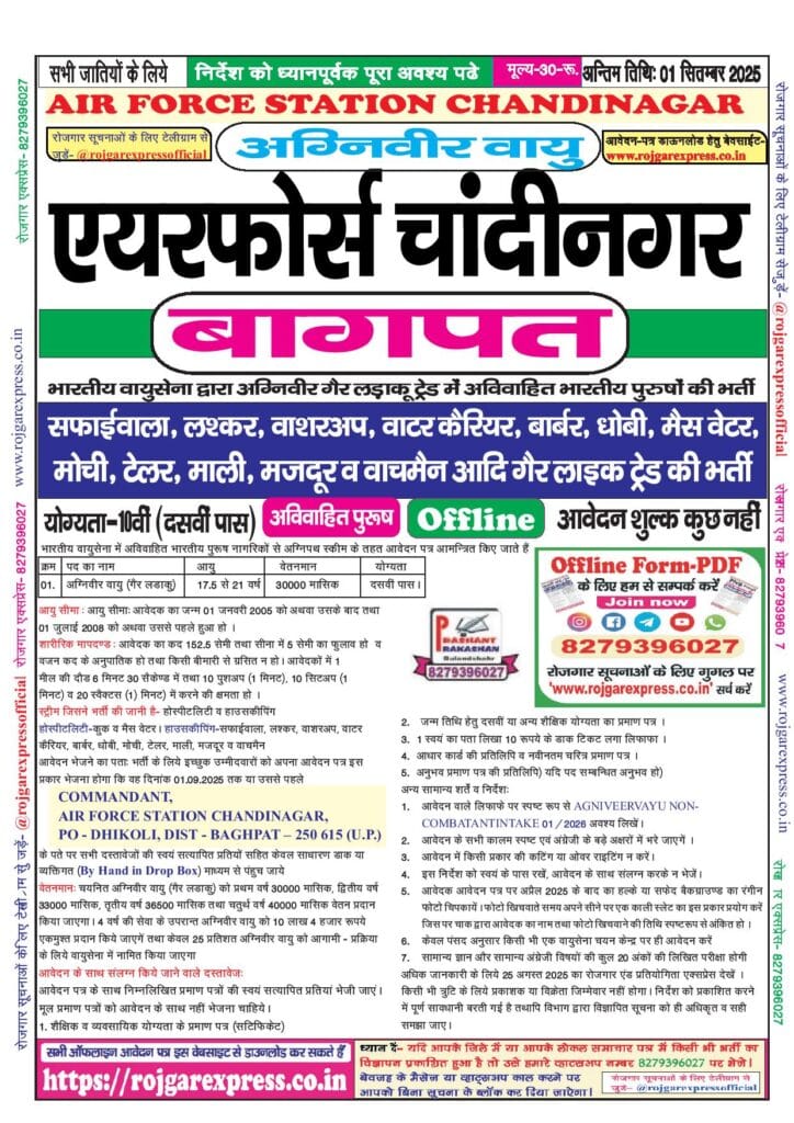Category: 10th Pass, Agniveer Vayu, Airforce, Latest Jobs, Offline Forms