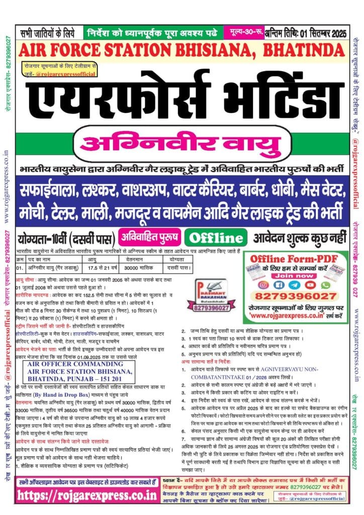 Indian Air Force Agniveer Vayu Non-Combatant, Bhatinda