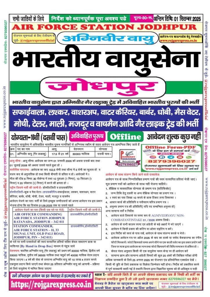 Indian Air Force Agniveer Vayu Non-Combatant, Jodhpur