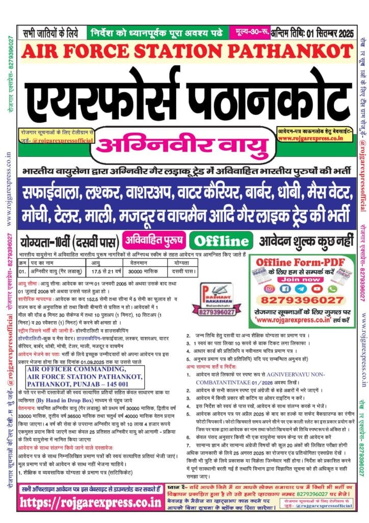 Indian Air Force Agniveer Vayu Non-Combatant, Pathankot