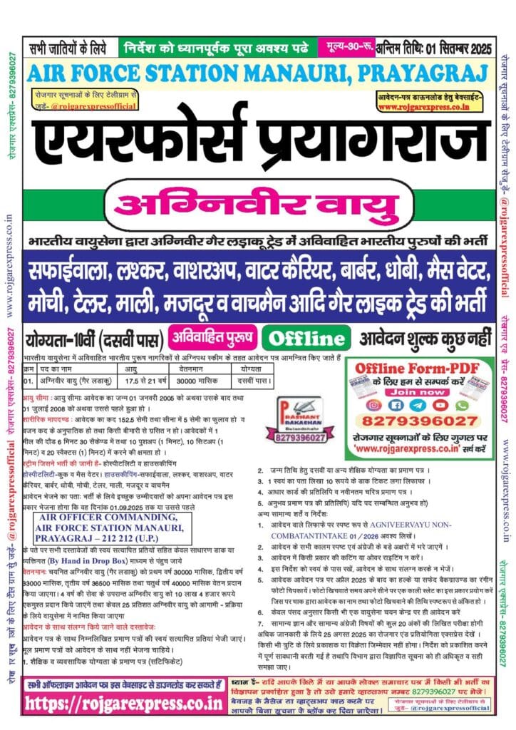 Indian Air Force Agniveer Vayu Non-Combatant, Prayagraj