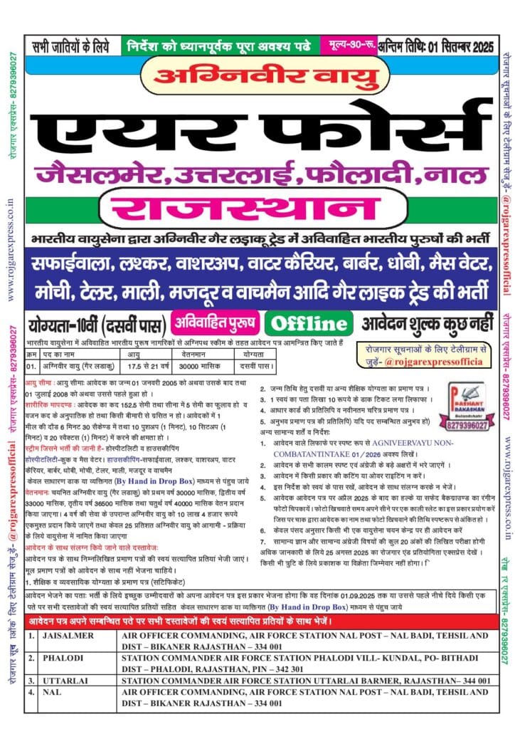 Indian Air Force Agniveer Vayu Non-Combatant, Rajasthan
