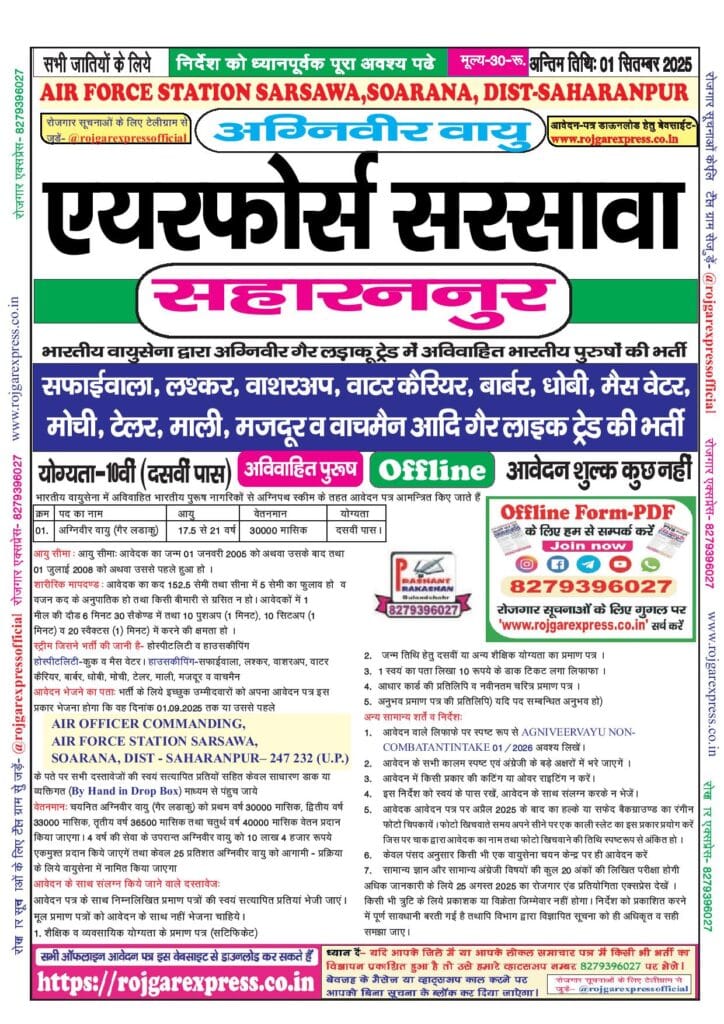Indian Air Force Agniveer Vayu Non-Combatant, Saharanpur