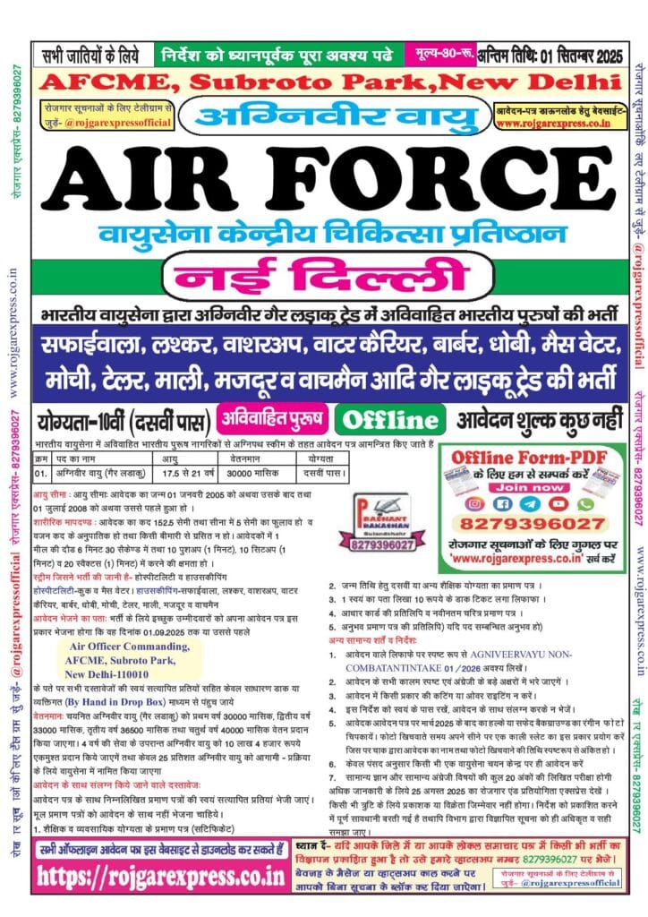 Category: 10th Pass, Agniveer Vayu, Airforce, Latest Jobs, Offline Forms