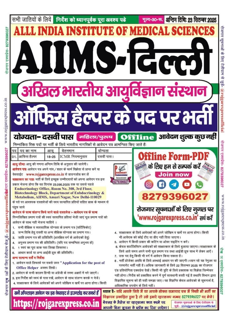 Category: 10th Pass, 12th Pass, All India Jobs, Graduation, Latest Jobs, Medical, Offline Forms