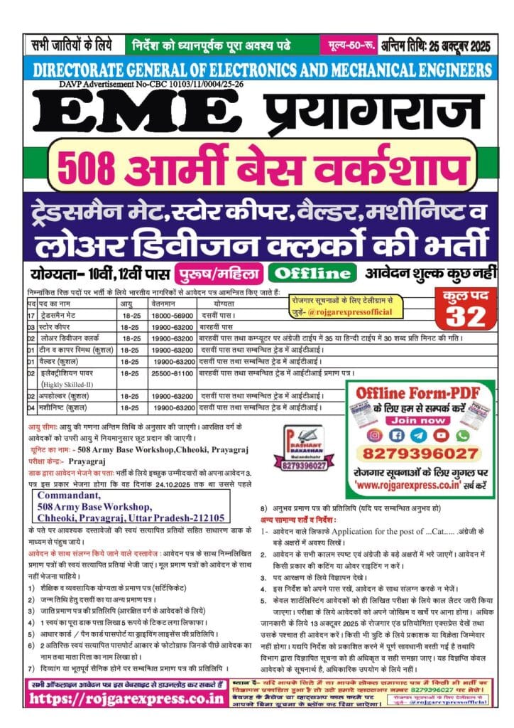 Category: 10th Pass, 12th Pass, All India Jobs, Army EME, Defence, Defence Jobs, Latest Jobs, Offline Forms, Uncategorized