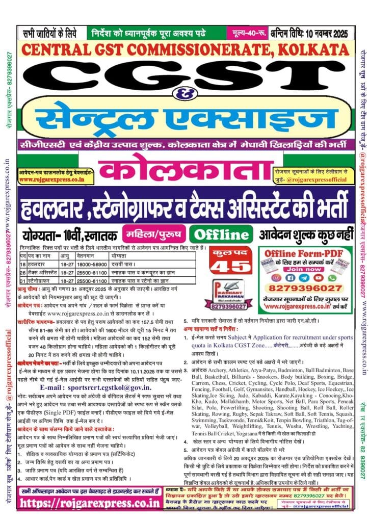 Recruitment for the post of Havaldar, tax Assisatnt & Stenographer