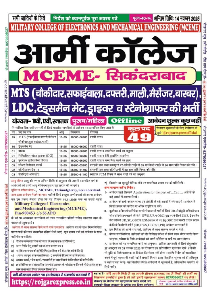 Category: 10th Pass, 12th Pass, All India Jobs, Army EME, Graduation, IT Jobs, Latest Jobs, Offline Forms