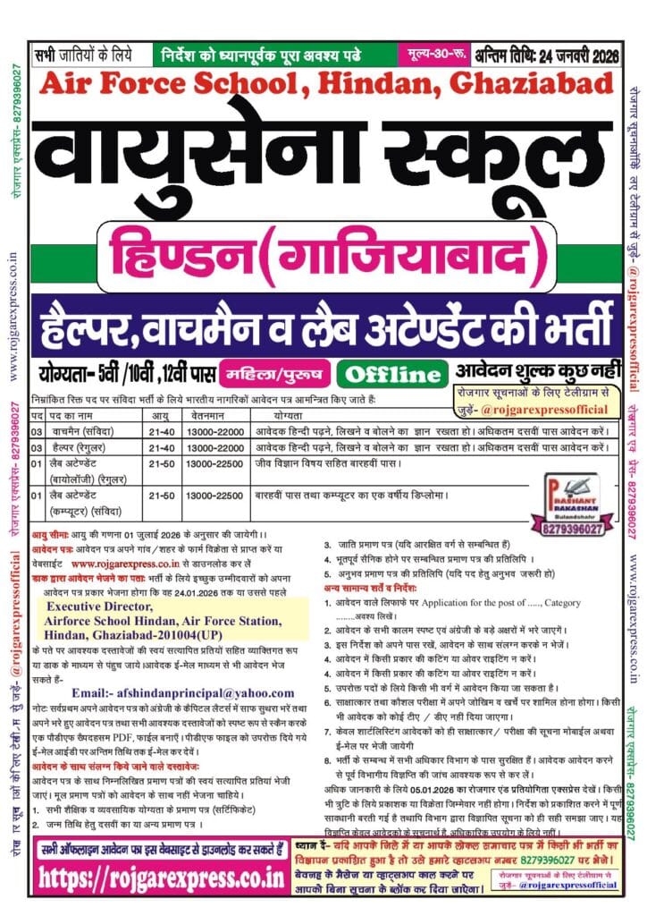 Recruitment for the post of Helper, Watchman & Lab Attendant.