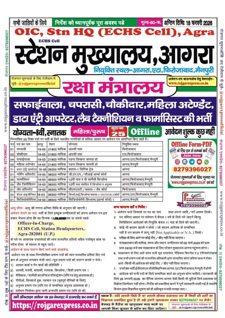 Recruitment for the post of Sweeper, Peon, Watchman, Female Attendant, Data Entry Operator, Lab Technician & Pharmacist.