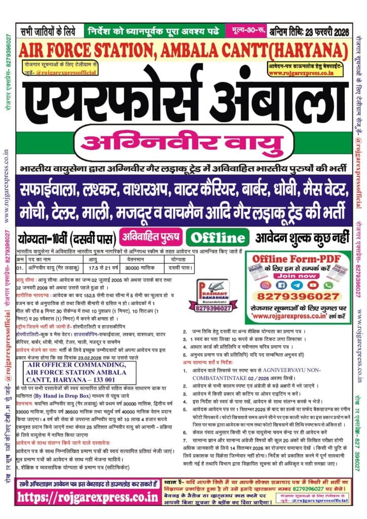 Indian Air Force Agniveer Vayu Non-Combatant, Ambala