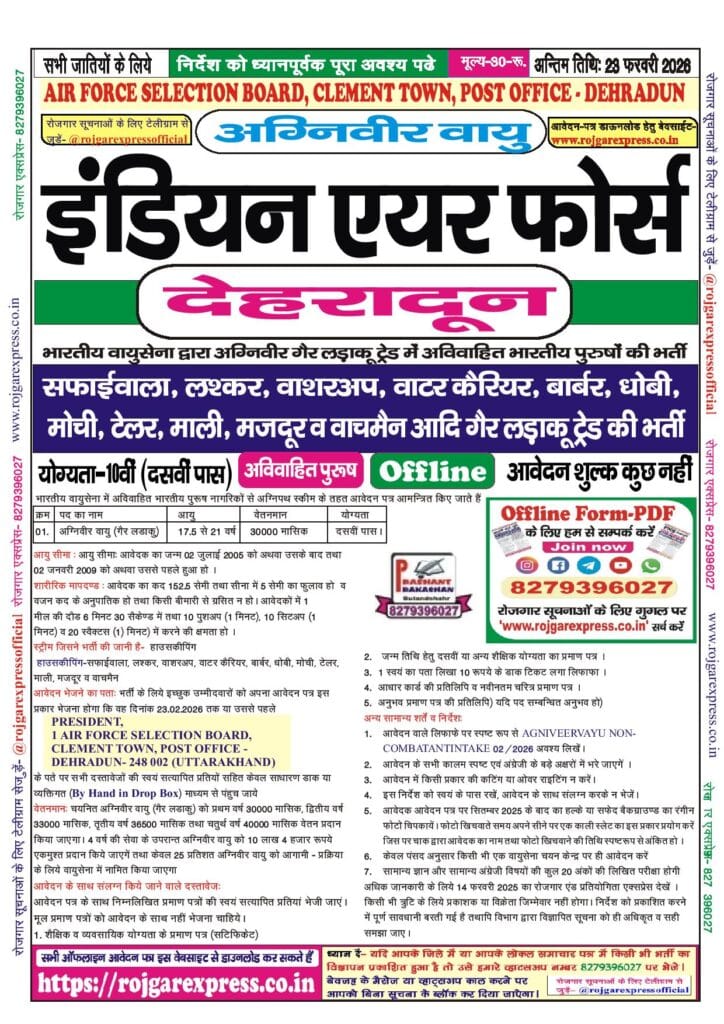 - Indian Air Force Agniveer Vayu Non-Combatant, Dehradun