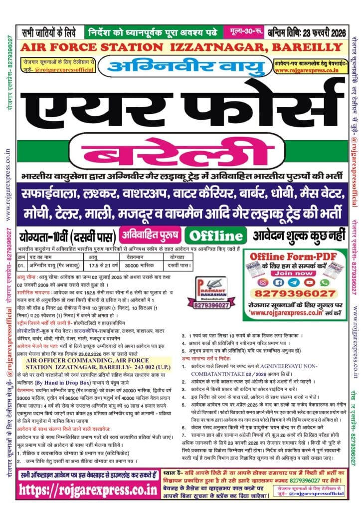 Indian Air Force Agniveer Vayu Non-Combatant, Bareilly