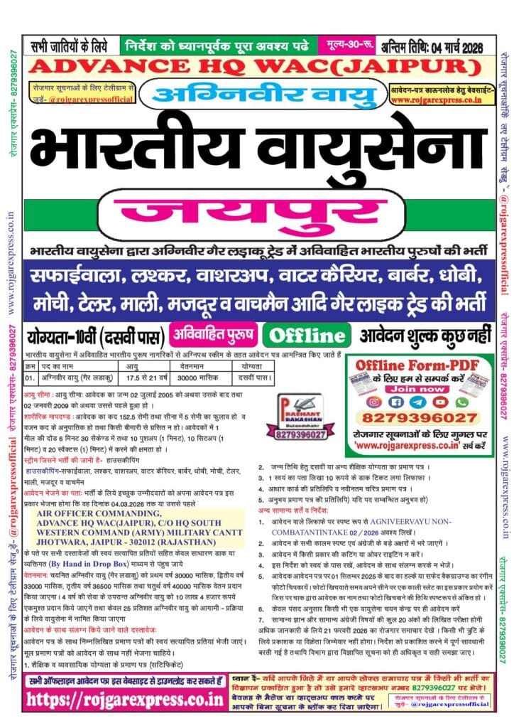 Indian Air Force Agniveer Vayu Non-Combatant, Jaipur
