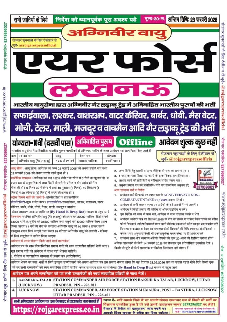 - Indian Air Force Agniveer Vayu Non-Combatant, Lucknow