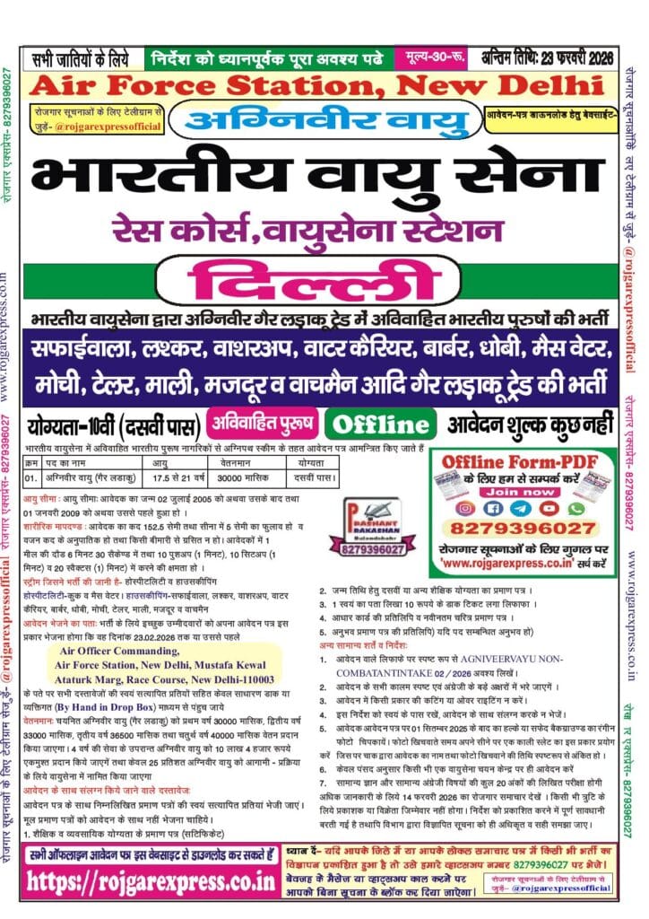 - Indian Air Force Agniveer Vayu Non-Combatant, New Delhi