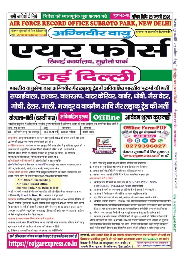 Category: 10th Pass, Agniveer Vayu, Airforce, All India Jobs, Defence, Latest Jobs, Offline Forms