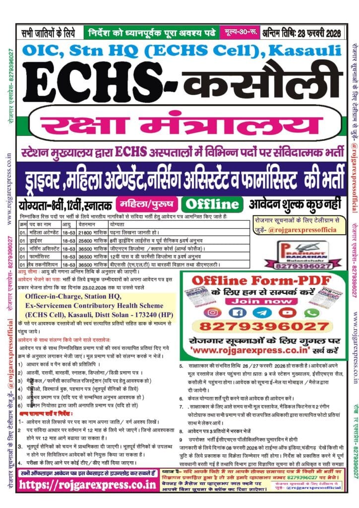 Recruitment for the post of Driver, Female Attendant, Pharmacist & Nursing Assistant.