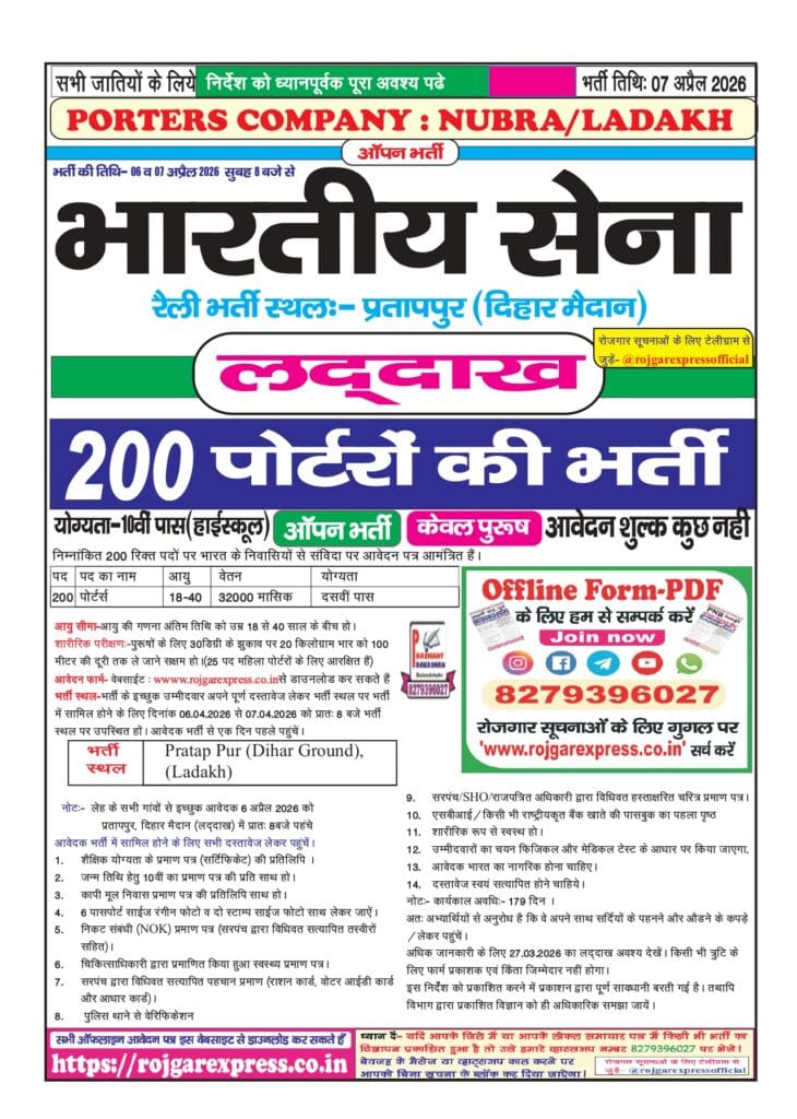 Recruitment for the post of 200 Porters.