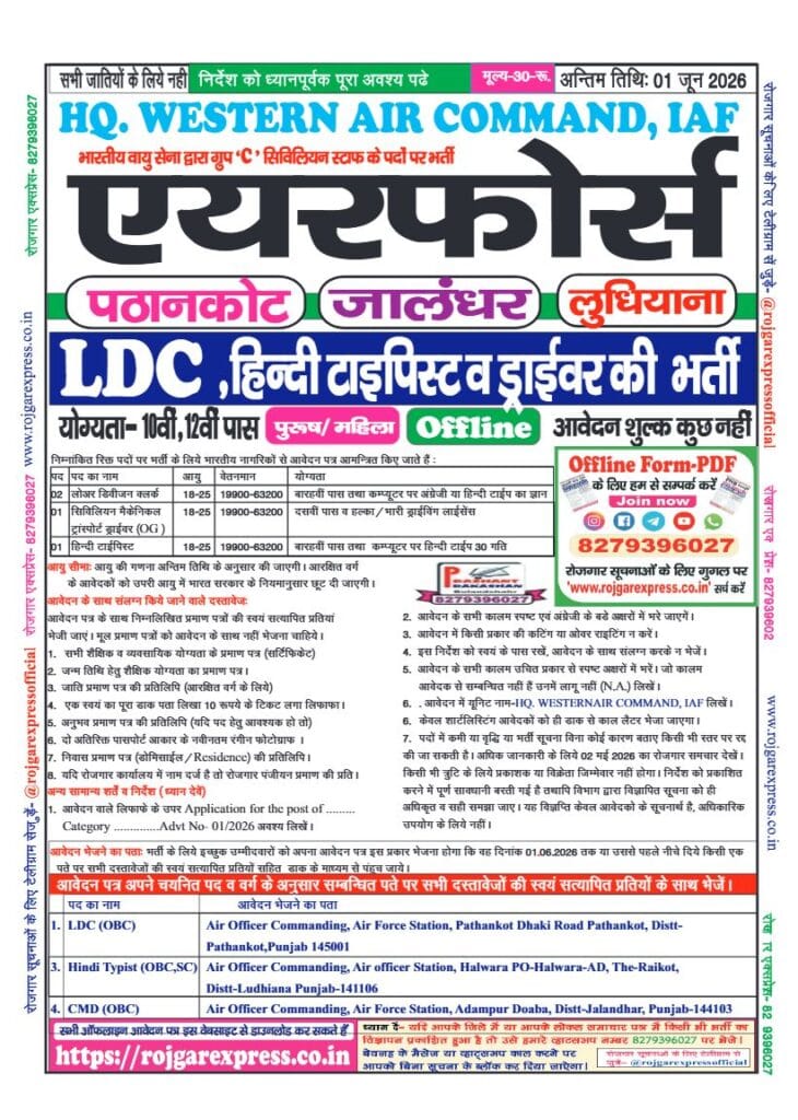 Category: 10th Pass, 12th Pass, Airforce, Latest Jobs, Offline Forms