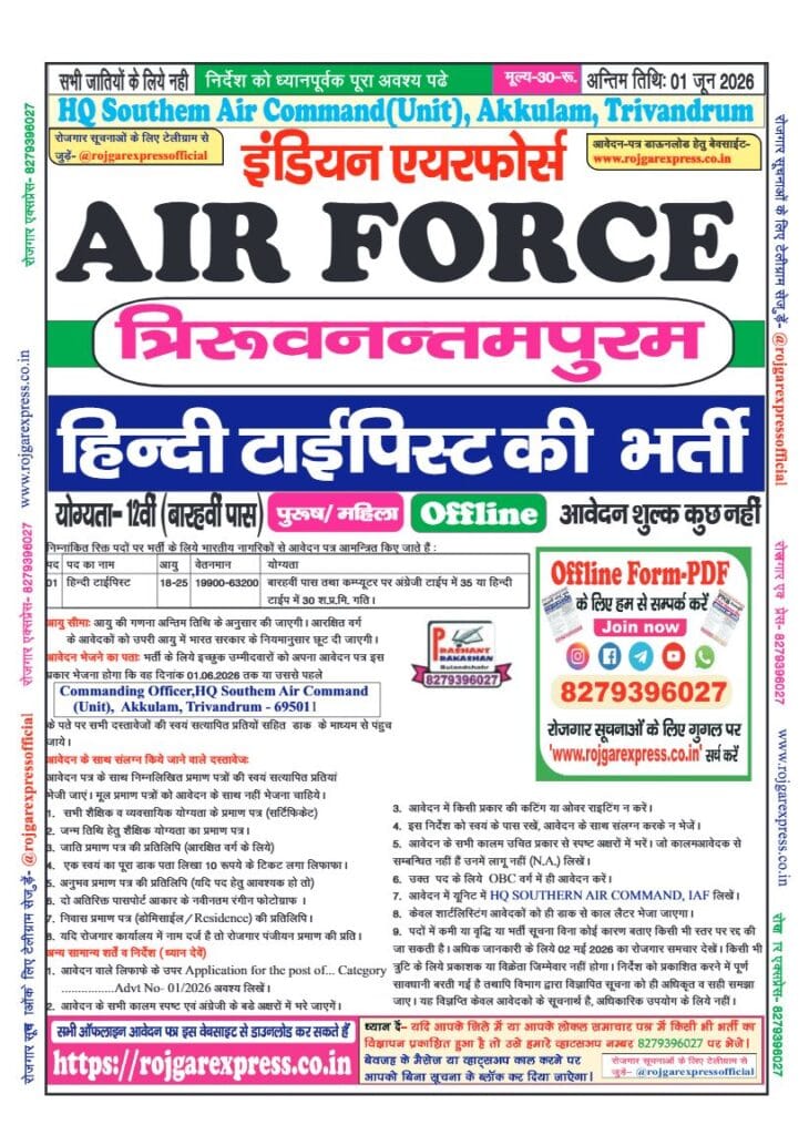 Category: 12th Pass, Airforce, Latest Jobs, Offline Forms